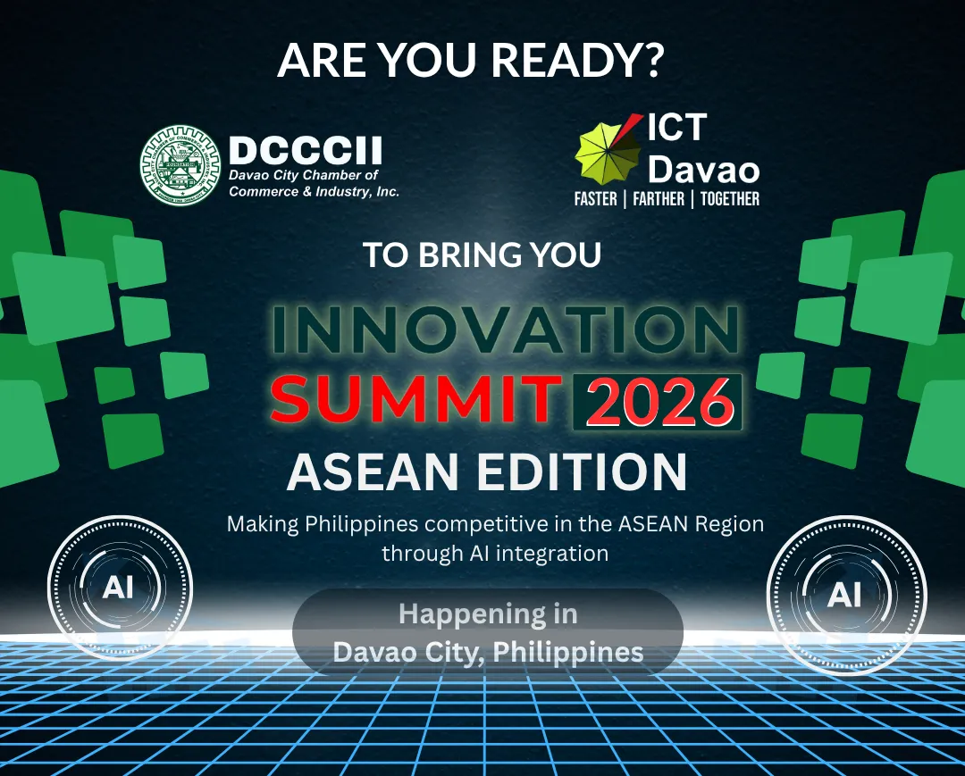 The Davao City Chamber of Commerce and Industry, Inc. (DCCCII) and ICT Davao, Inc. will once again collaborate to bring you the 3rd Innovation Summit - the INNOVATION SUMMIT 2026! AI will take the center stage as we look at how Davao City and Philippines can take the lead in the AI integration within the ASEAN Region. Standby for further announcement. Inquire this early to secure the limited sponsorship slots!